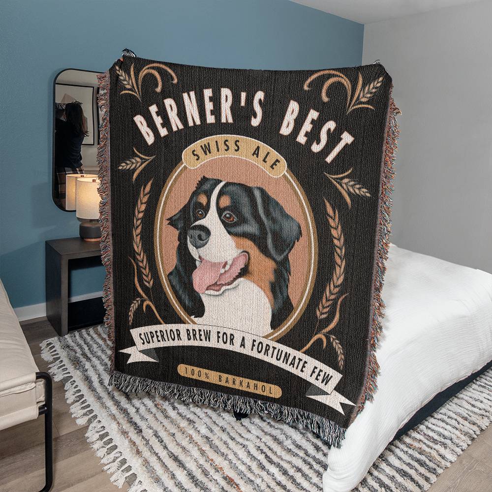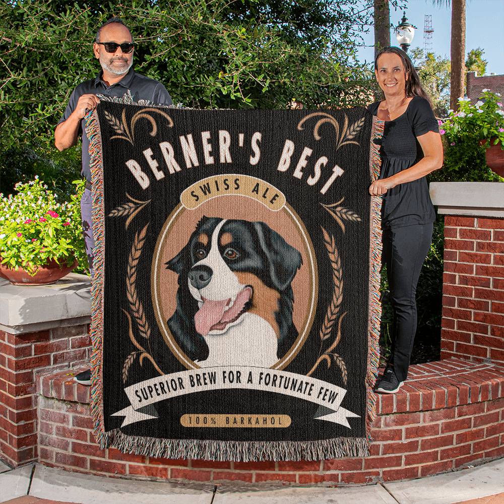 This Heirloom Artwork Woven Blanket featuring the artwork of Retro Pets artist Krista Brooks (that's me!) is such a unique keepsake. Lovingly woven on a loom with cozy 100% cotton yarn, it makes a fantastic gift for yourself or the Bernese Mountain Dog lover in your life. Hang it on the wall, throw it over you on the couch... super versatile!